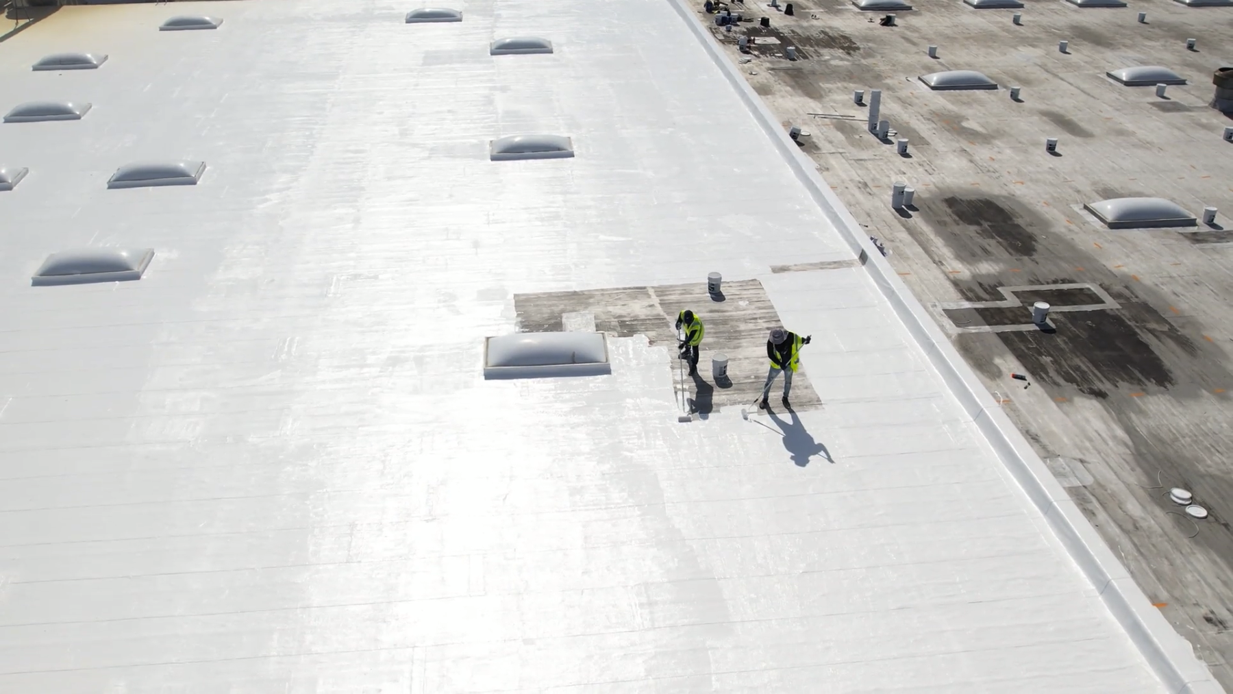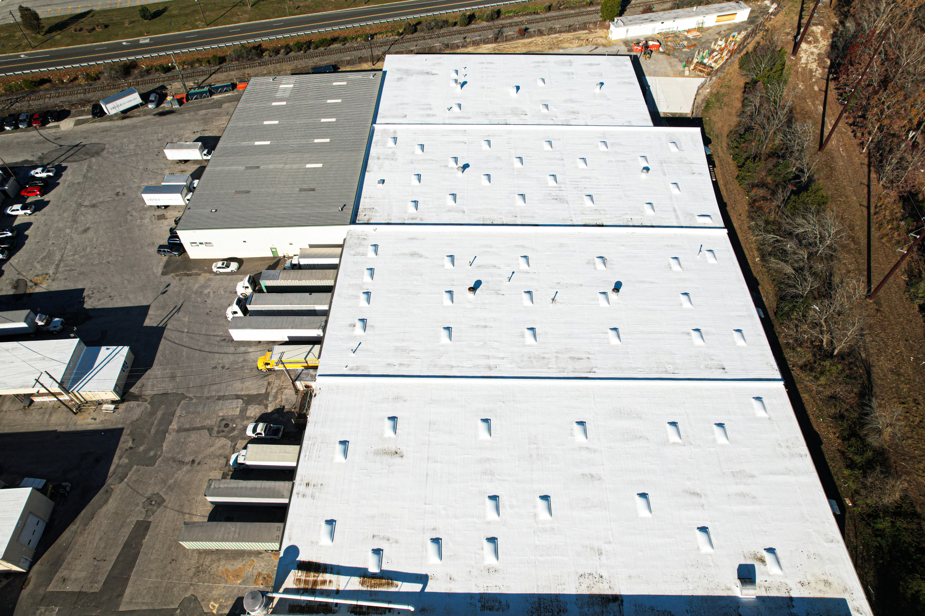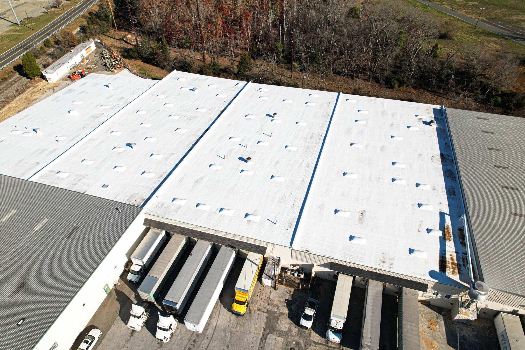 Our approach began with a thorough inspection to identify and repair all active leaks, providing a stable foundation for the new coating. Next, the roof underwent extensive power washing to remove dirt, debris, and contaminants, ensuring the silicone would adhere properly. Once the surface was fully prepared, our skilled team applied the high-solid silicone coating using a rolling method, covering the main roof as well as smaller adjacent bays to ensure uniform protection. Every step of the process was guided by long-tenured DDS team members, whose extensive experience ensured precision, consistency, and attention to detail throughout the project.